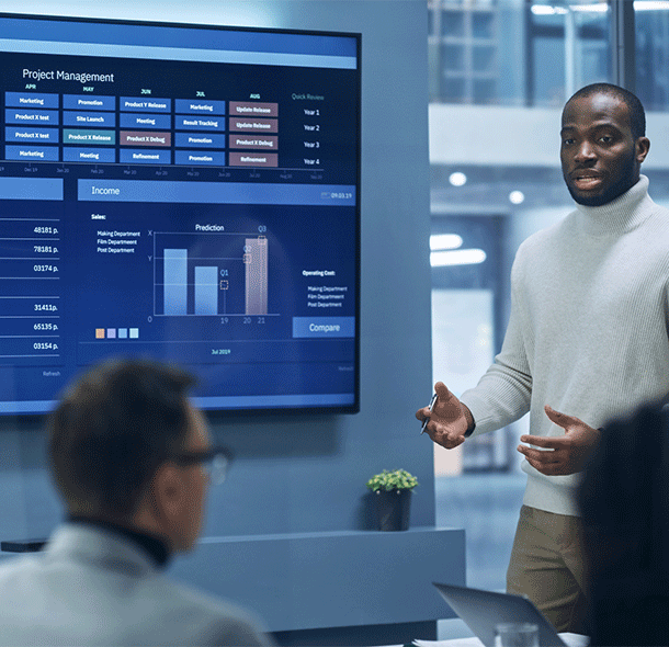 When meeting expectations are high, our AV service team shines. From board meetings and investor calls to annual company-wide events, we partner with our clients to proactively mitigate risks and develop contingency plans to ensure technology disruptions are minimized. We focus on technology so that your team can focus on their content.