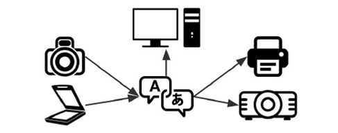 4: Conversion between color devices. Though devices have different color profiles, they can be programmed and/or recalibrated so the color they reproduce will be consistent with other devices. This requires experienced technicians to make the adjustments to each device necessary for color consistency.